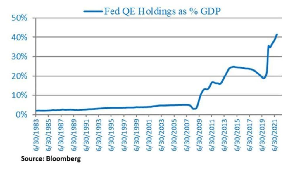 Fed QE holdings as % of GDP by year